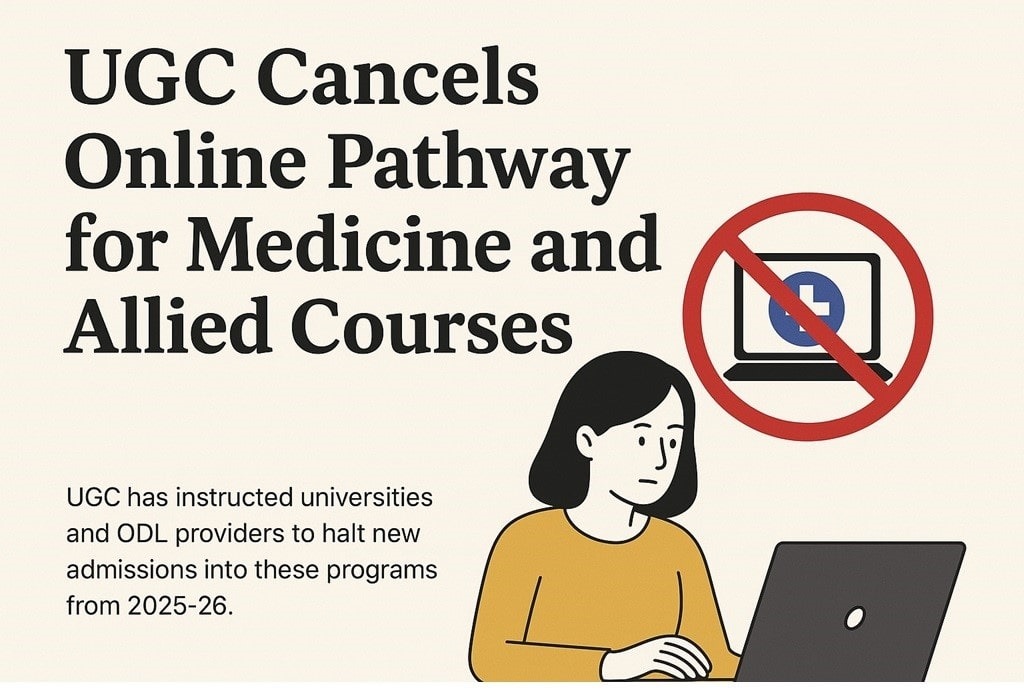 Starting from the July–August 2025 academic session, the University Grants Commission (UGC) has prohibited universities and institutions from offering health sciences courses through Open and Distance Learning (ODL) or online modes. The restriction covers a wide spectrum of disciplines, including medicine, dentistry, nursing, pharmacy, physiotherapy, AYUSH, and allied health programs, along with related subjects such as psychology, microbiology, and biotechnology.